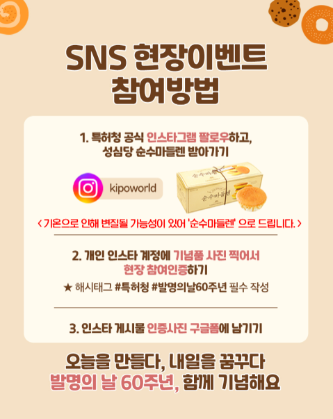 - 특허청 공식 인스타그램 (@kipoworld) 팔로우하고, 성심당 순수 마들렌 받아가기!