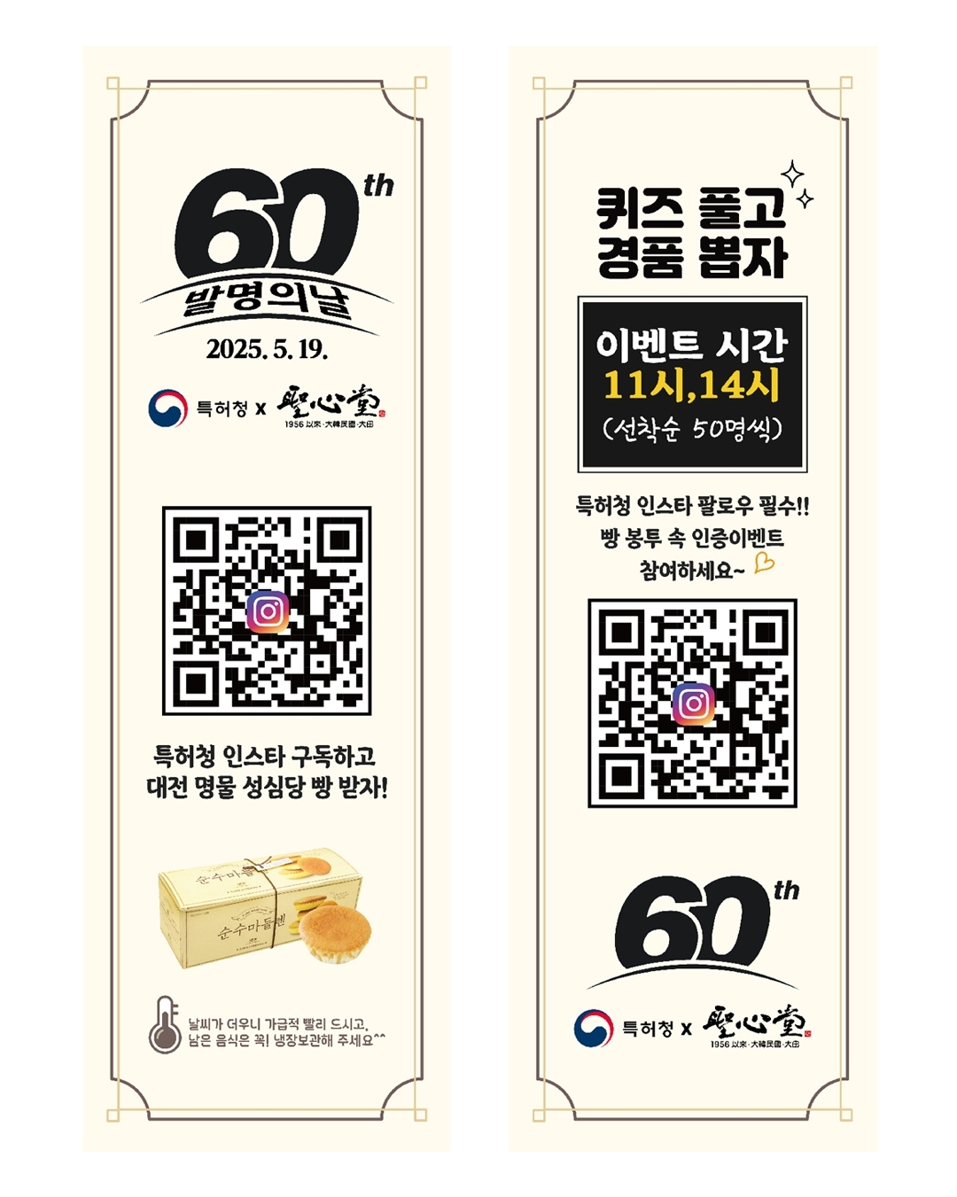 이번 발명의 날 60주년 기념 특허청 X 성심당 콜라보 사전홍보이벤트를 통해, 일상 속 창의적인 아이디어가 특허로 이어지는 과정을 알리고, 지식재산 중요성과 그 가치가 친근하게 느껴질 수 있는 기회가 될 것 같습니다.